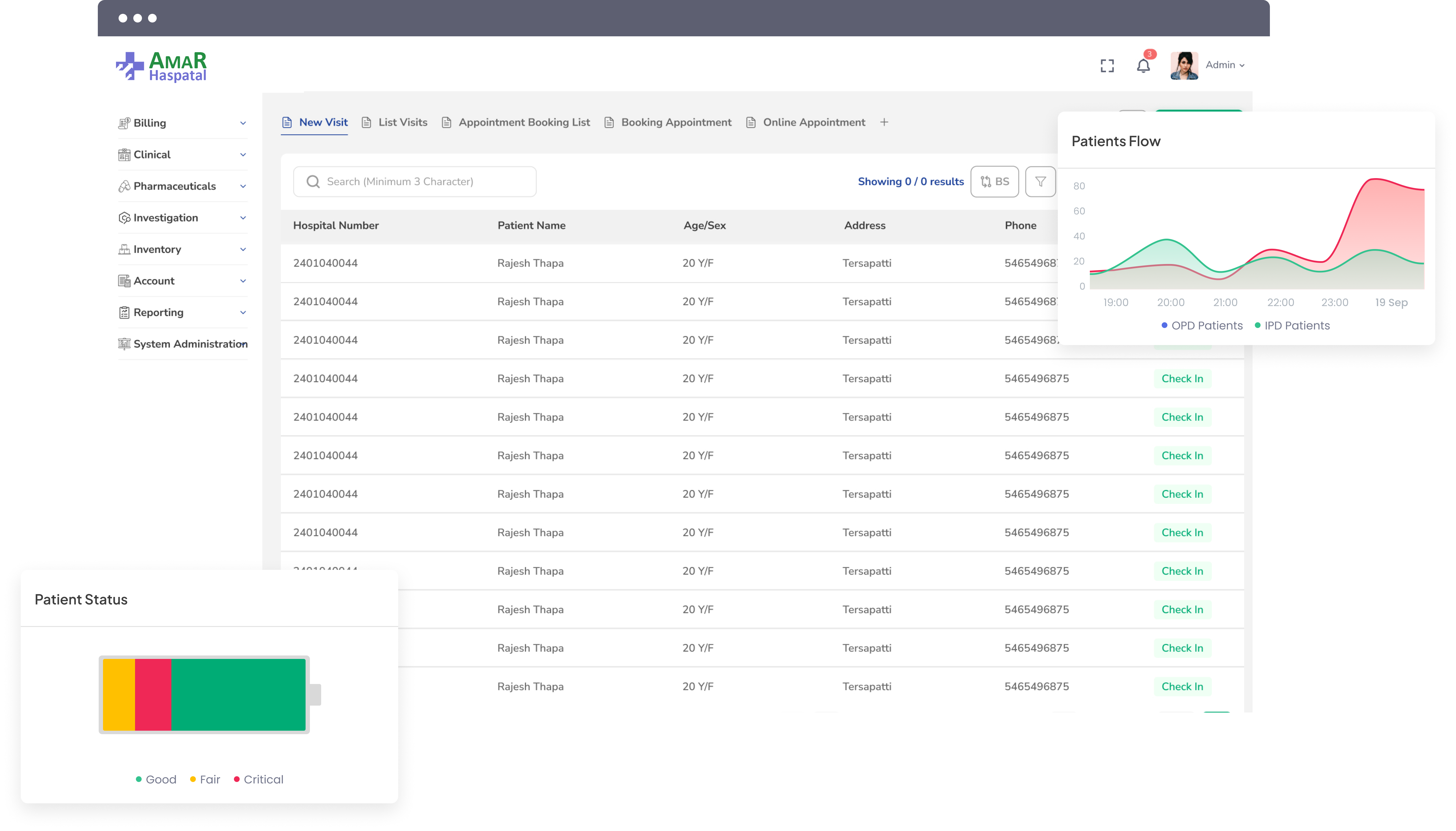 | Patient Billing System (OP/IP/Discharge etc.) | ||